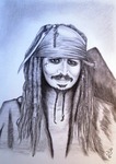 2016Captain Jack zoals we hem kennen van The Pirates of the Caribbean. Wordt ingelijst gelevert in een brede, zwarte passe partout met met lijst(zilver) met een afbeelding van the Black Pearl erop (het schip van Captain Jack).